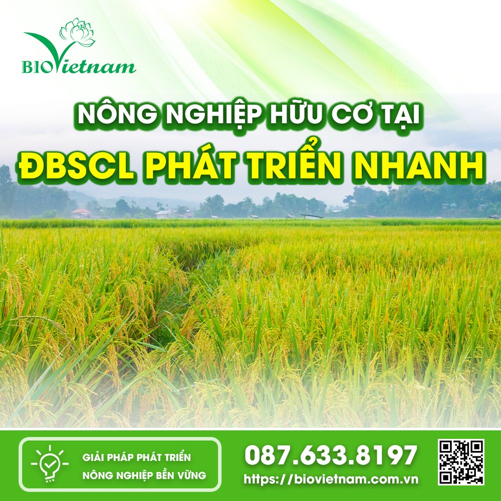 Sản xuất nông nghiệp hữu cơ (NNHC) tại ĐBSCL phát triển nhanh. Không chỉ tạo ra thực phẩm an toàn mà còn đảm bảo hệ sinh thái bền vững, góp phần bảo vệ môi trường và sức khỏe con người. NNHC sử dụng các phương pháp canh tác tự nhiên, không sử dụng hóa chất tổng hợp như phân bón hóa học, thuốc trừ sâu, và thuốc diệt cỏ.