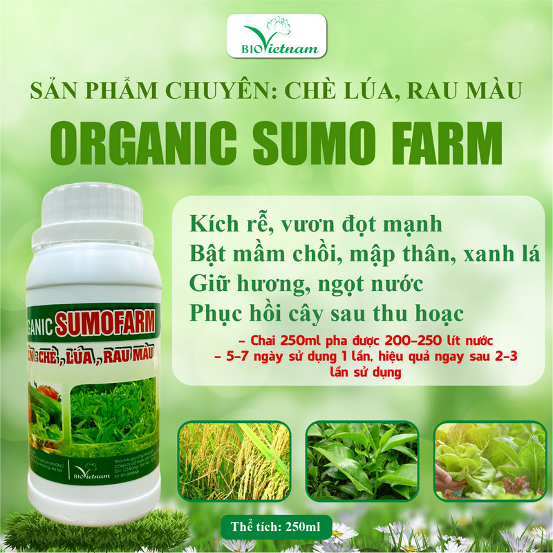 - Phục hồi cây sau thu hoạch: Organic Sumo Farm cung cấp các dưỡng chất cần thiết để tái tạo và phục hồi sức khỏe của cây trồng sau khi thu hoạch, giúp chúng phục hồi nhanh chóng và chuẩn bị cho vụ mùa tiếp theo.