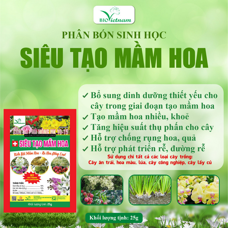 Siêu Tạo Mầm Hoa không chỉ là một sản phẩm phân bón thông thường mà còn là một giải pháp toàn diện để hỗ trợ cây trồng phát triển mạnh mẽ và khỏe mạnh, đặc biệt là trong giai đoạn tạo mầm hoa. Công dụng của Siêu Tạo Mầm Hoa bao gồm: